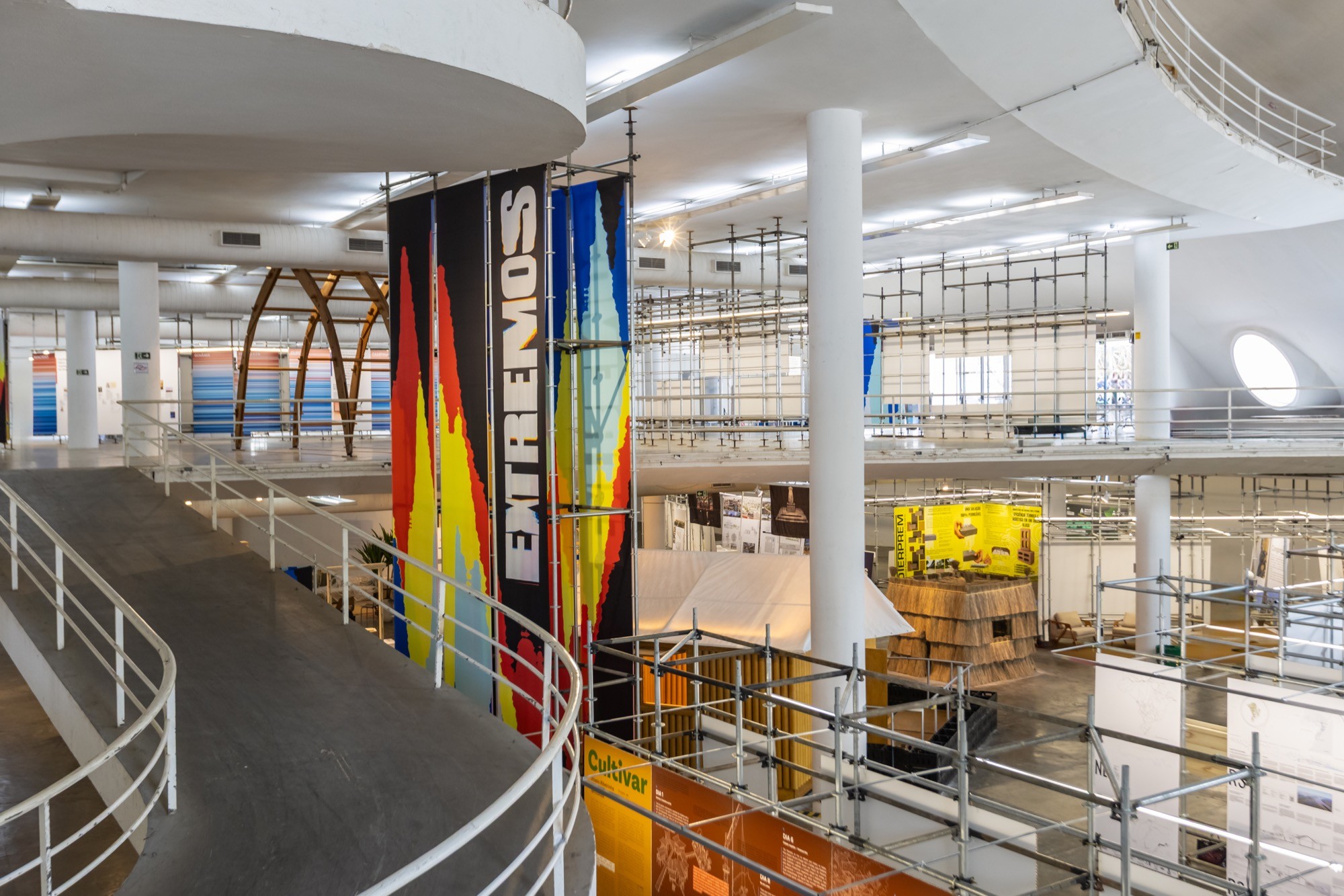 Neste ano, o último andar da Oca abriga as chamadas construções experimentais, que funcionam como laboratórios de soluções arquitetônicas. Serão testados materiais como taipa de pilão industrializada, solo-cimento, madeira reflorestada e palha, sempre com foco no baixo impacto ambiental.