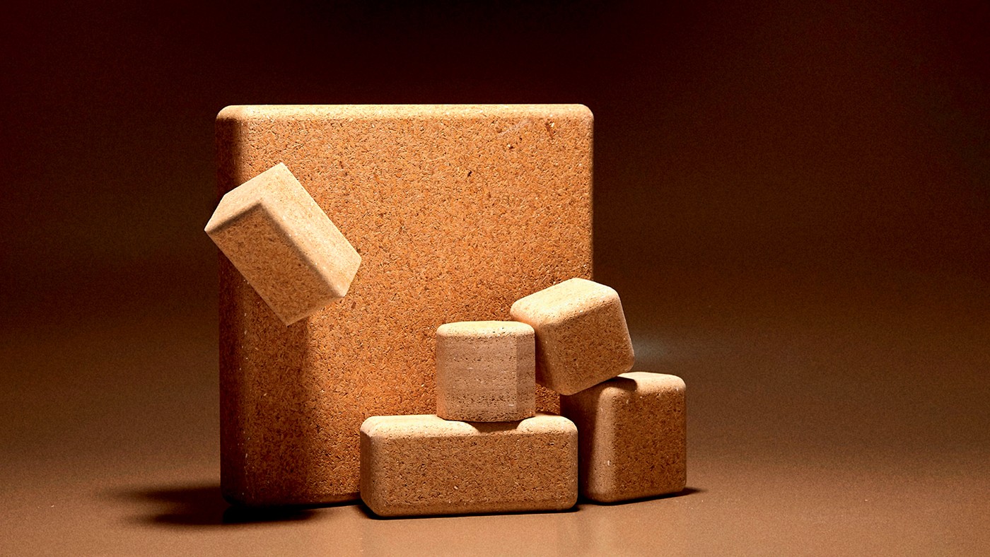 O brinquedo Rice Husk Village, desenvolvido pelo escritório sul-coreano Subin Cho Design, é composto apenas por casca de arroz, amido, água e pigmentos naturais, sem uso de ligantes químicos. O material biodegradável é considerado seguro para crianças, que podem levá-los à boca. O conjunto inclui blocos moldados em formatos de construção distintos, permitindo montar paisagens variadas. Em grupo, a dinâmica é posicionar as peças alternadamente sobre uma bandeja de equilíbrio: quem fizer o brinquedo colapsar primeiro, perde.