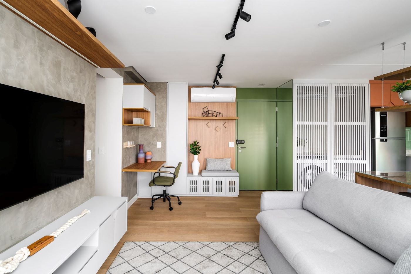 Com tantas funções coexistindo, a organização deixa de ser apenas questão de hábito e passa a depender diretamente do projeto. Elementos como marcenaria inteligente, móveis multifuncionais e divisórias são fundamentais.