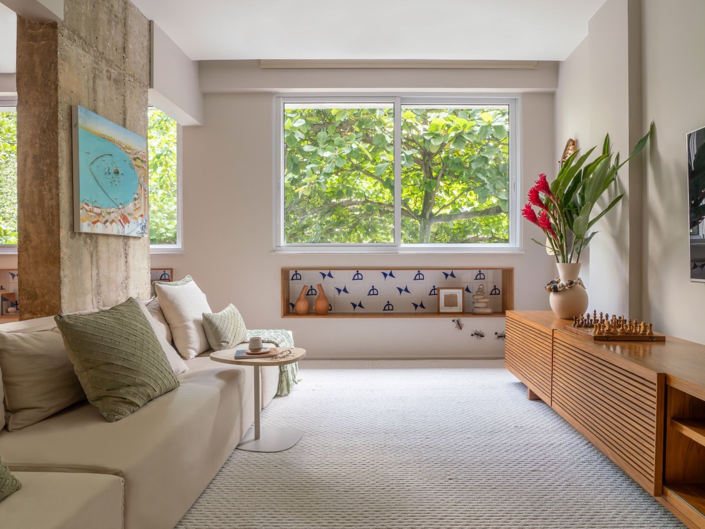 Baiana de origem, a proprietária deste apartamento viveu em São Paulo por 16 anos e sempre manteve uma ligação afetiva com o Rio de Janeiro, destino frequente de férias desde a infância. Ao adquirir o imóvel de 100 m² no Leblon, sua nova morada, pediu à arquiteta Gabriella Machado, do escritório homônimo (@gabriellamachadoarquitetura), um espaço que refletisse suas raízes nordestinas, especialmente a Bahia, em uma atmosfera clara, leve e com clima praiano.