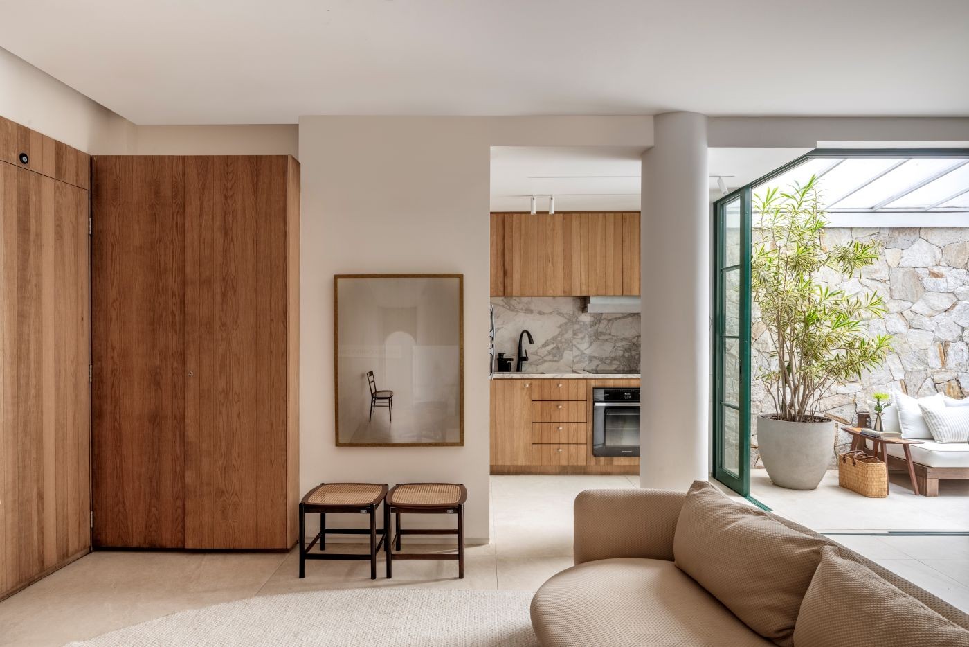 Assinado pela arquiteta Babi Teixeira (@babiteixeira), o projeto traduz um morar contemporâneo com alma carioca, em que integração, materiais naturais e escolhas precisas constroem uma atmosfera atemporal.