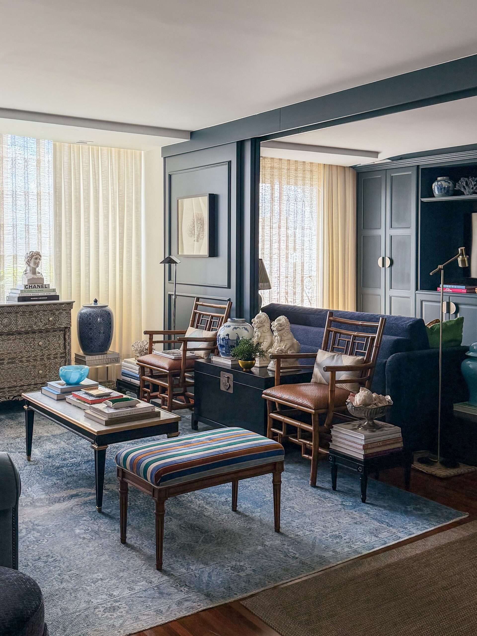 Visitei o apartamento da designer de interiores Marina Lieberman, cujo ponto de partida para a decoração foi o estilo New England – uma referência que atravessa toda a morada.