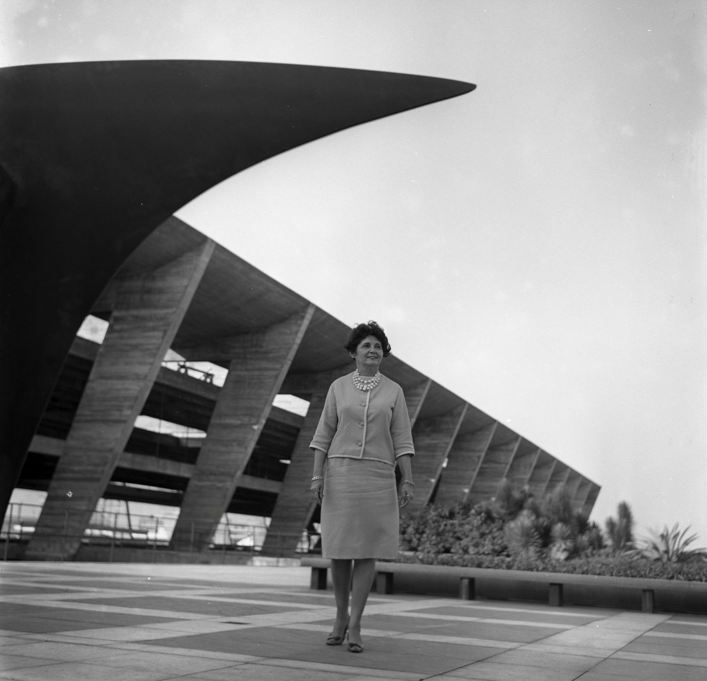 Carmen Portinho no canteiro de obras da construção do Museu de Arte Moderna do Rio de Janeiro