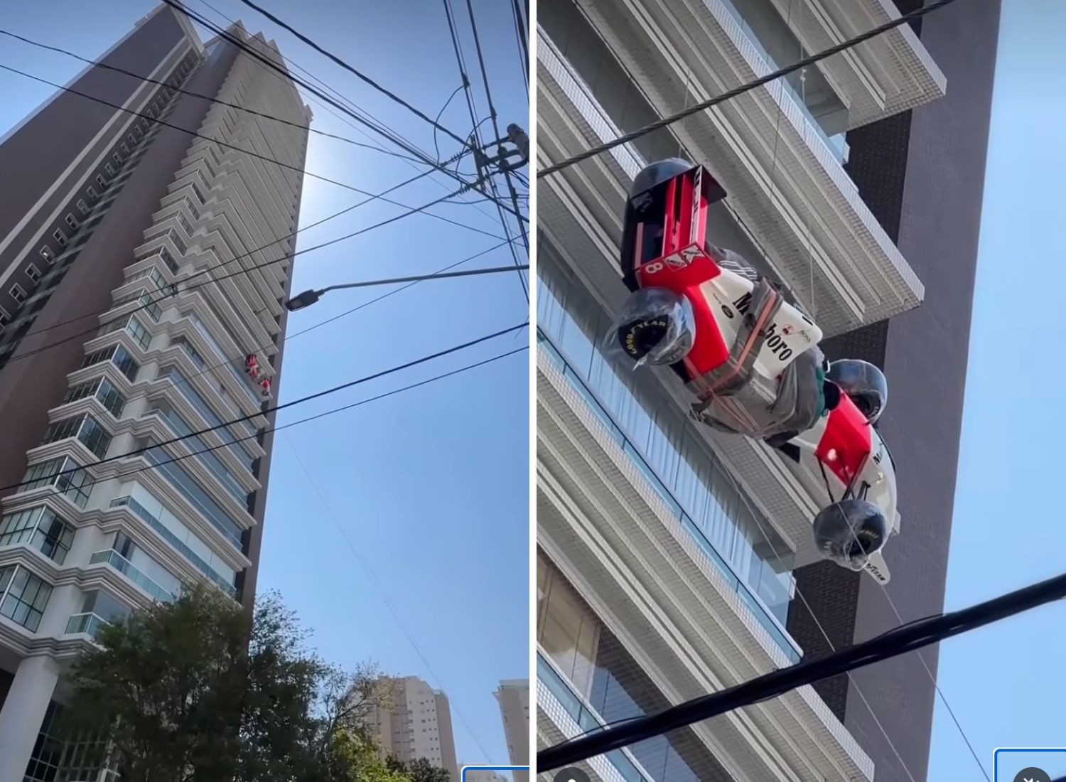 Na última terça-feira (30/9), moradores do Tatuapé, na Zona Leste de São Paulo, foram surpreendidos por uma cena inusitada: uma réplica do icônico veículo McLaren pilotado por Ayrton Senna foi visto “flutuando” pelos céus do bairro, suspenso por um guindaste. O vídeo, compartilhado pelo perfil @tatuapebairro no Instagram, mostra o carro sendo içado até o alto de um edifício de luxo, onde foi instalado em um dos apartamentos.