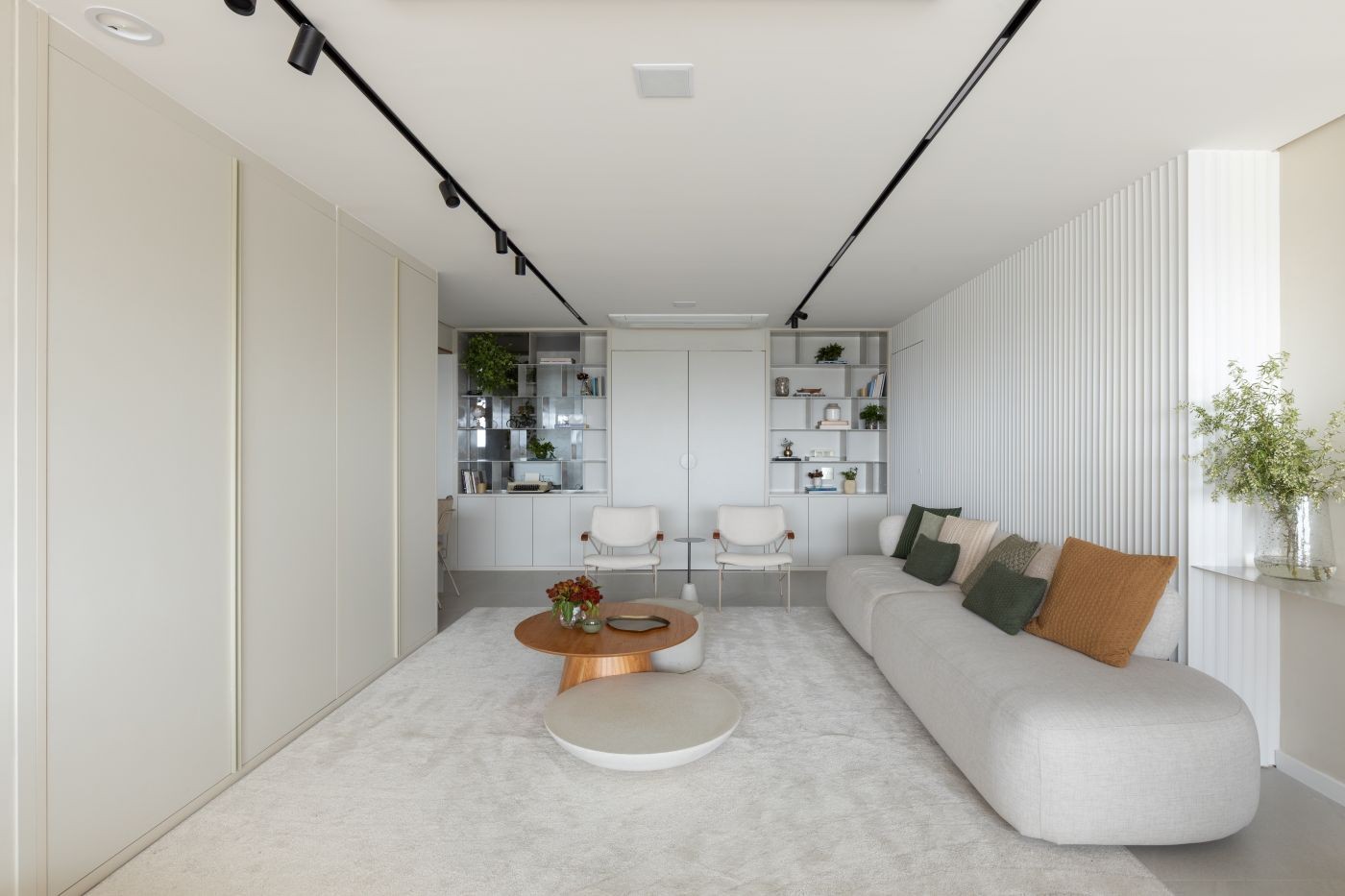 Visual minimalista e tons claros dominam apartamento de 158 m² em São Paulo