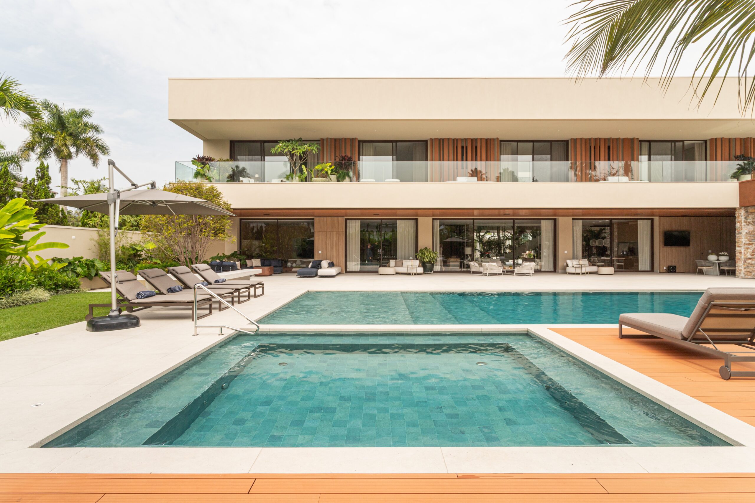Com uma metragem generosa que valoriza sua arquitetura, a casa de praia no Guarujá foi cuidadosamente projetada para receber reuniões