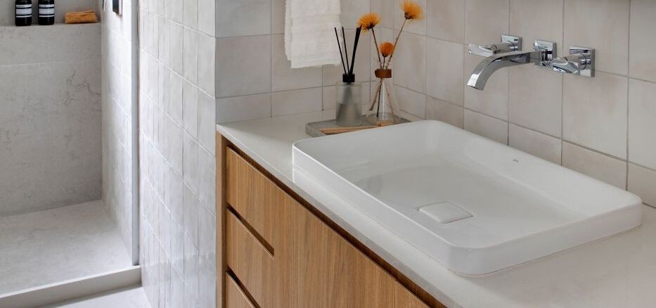 Entenda qual é a altura certa para pias com cuba de sobrepor para o banheiro ser mais confortável e ergonômico