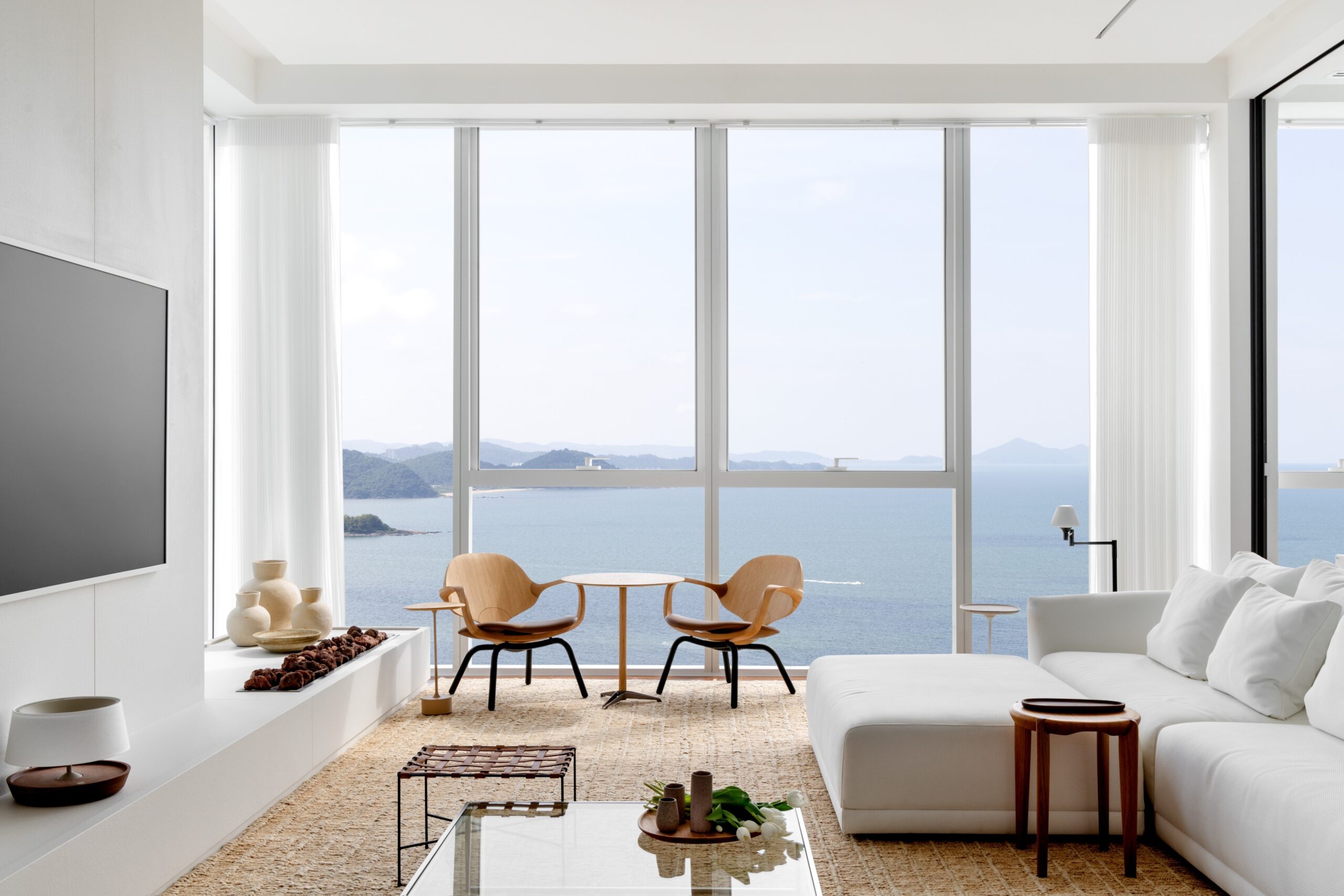 Cobertura exalta vista para o mar com paleta minimalista e design autoral