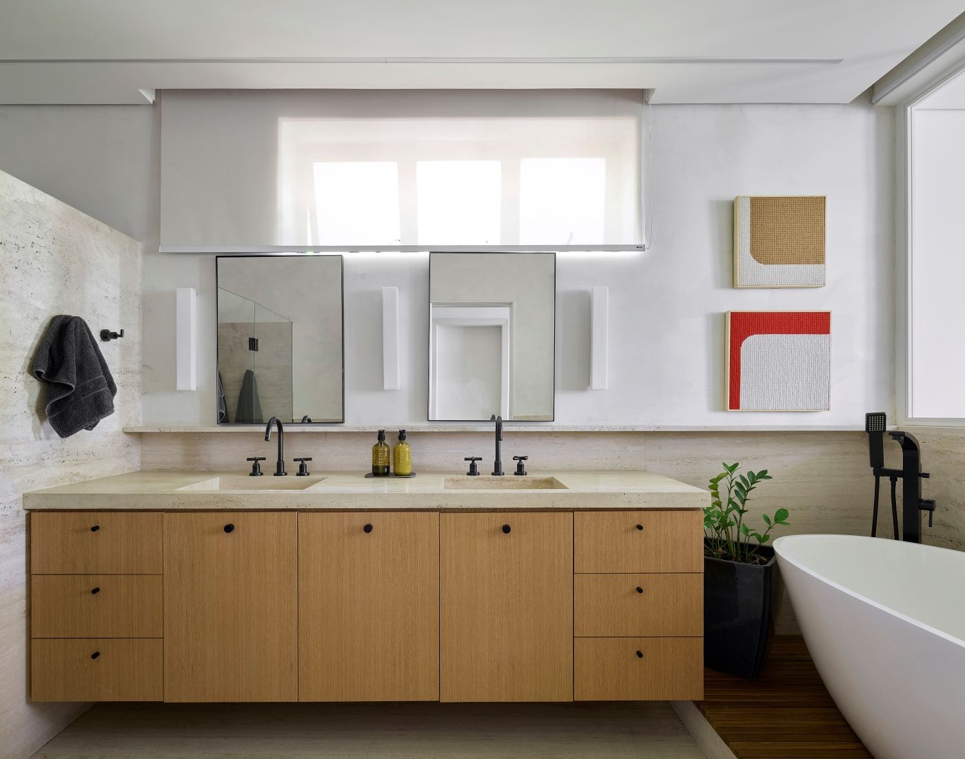 Idealizar um banheiro de casal pode ser um desafio, visto que o ambiente precisa conciliar estilos, rotinas e necessidades distintas, garantindo praticidade no uso diário. Iluminação, ventilação, circulação, escolha adequada de materiais e uma marcenaria bem planejada influenciam diretamente na experiência dos moradores. A seguir, confira dicas e projetos para te inspirar na criação do ambiente!
