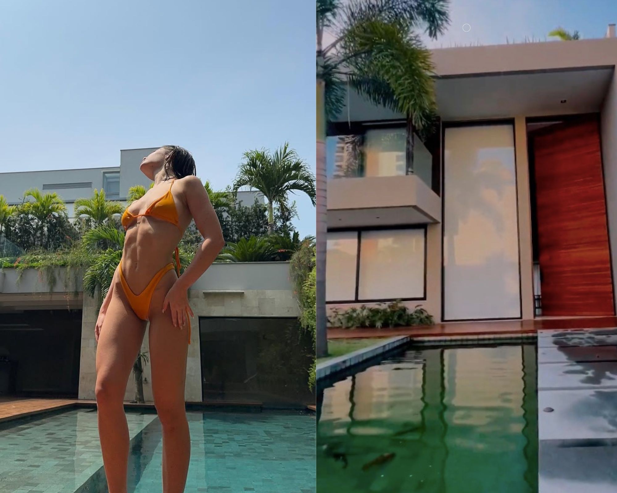 Jade Picon aproveita um momento de lazer na piscina de sua mansão na Barra da Tijuca, no Rio de Janeiro