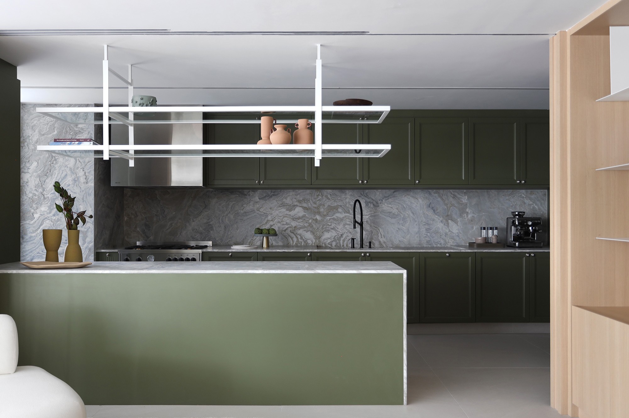 Uma cozinha verde, segundo o Feng Shui, não promete excesso, mas equilíbrio. E é justamente esse equilíbrio que permite que a abundância se mantenha. O verde se transforma em uma cor profundamente próspera, ainda que sua energia seja baixa e lenta.
