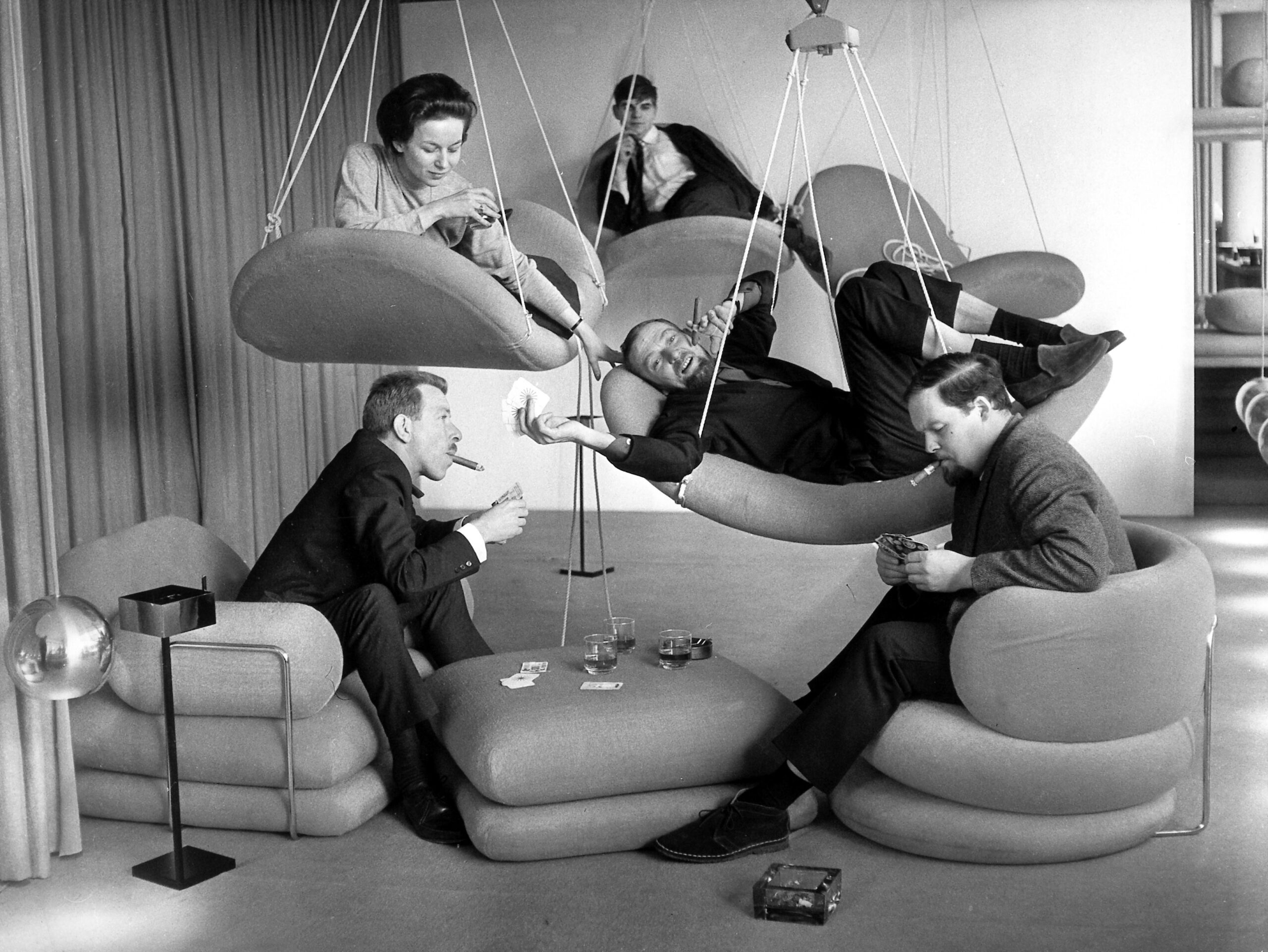 Exposição de mobiliário do arquiteto dinamarquês Verner Panton em Hamburgo, em novembro de 1961. Em 2026, ele completaria 100 anos e ganhou uma retrospectiva no Vitra Design Museum
