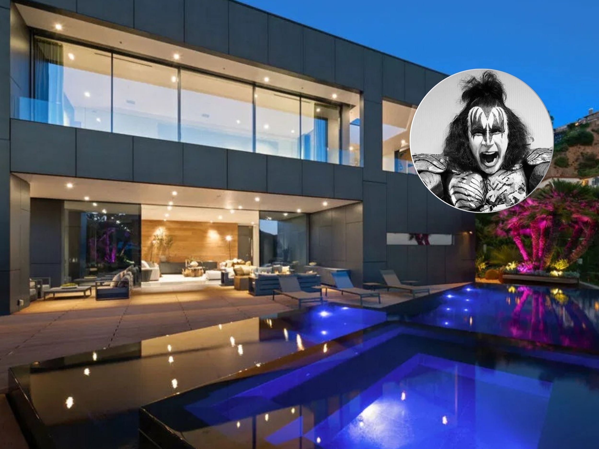 Mansão de Gene Simmons, do Kiss, com piscina preta tem preço reduzido