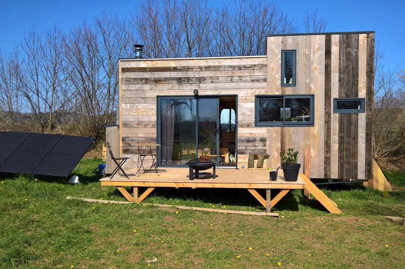 O Atelier Bois d’ici — expressão que pode ser traduzida livremente como “oficina local de madeira” — opera sua própria serraria e depósito de madeira no mesmo terreno do estúdio. Isso significa que cada construção começa não com madeira processada, mas com toras brutas. A proximidade com o material faz com que cada detalhe da arquitetura seja cuidadosamente definido, da escolha da espécie ao acabamento, criando projetos singulares e diferentes de muitas tiny houses pré-fabricadas.