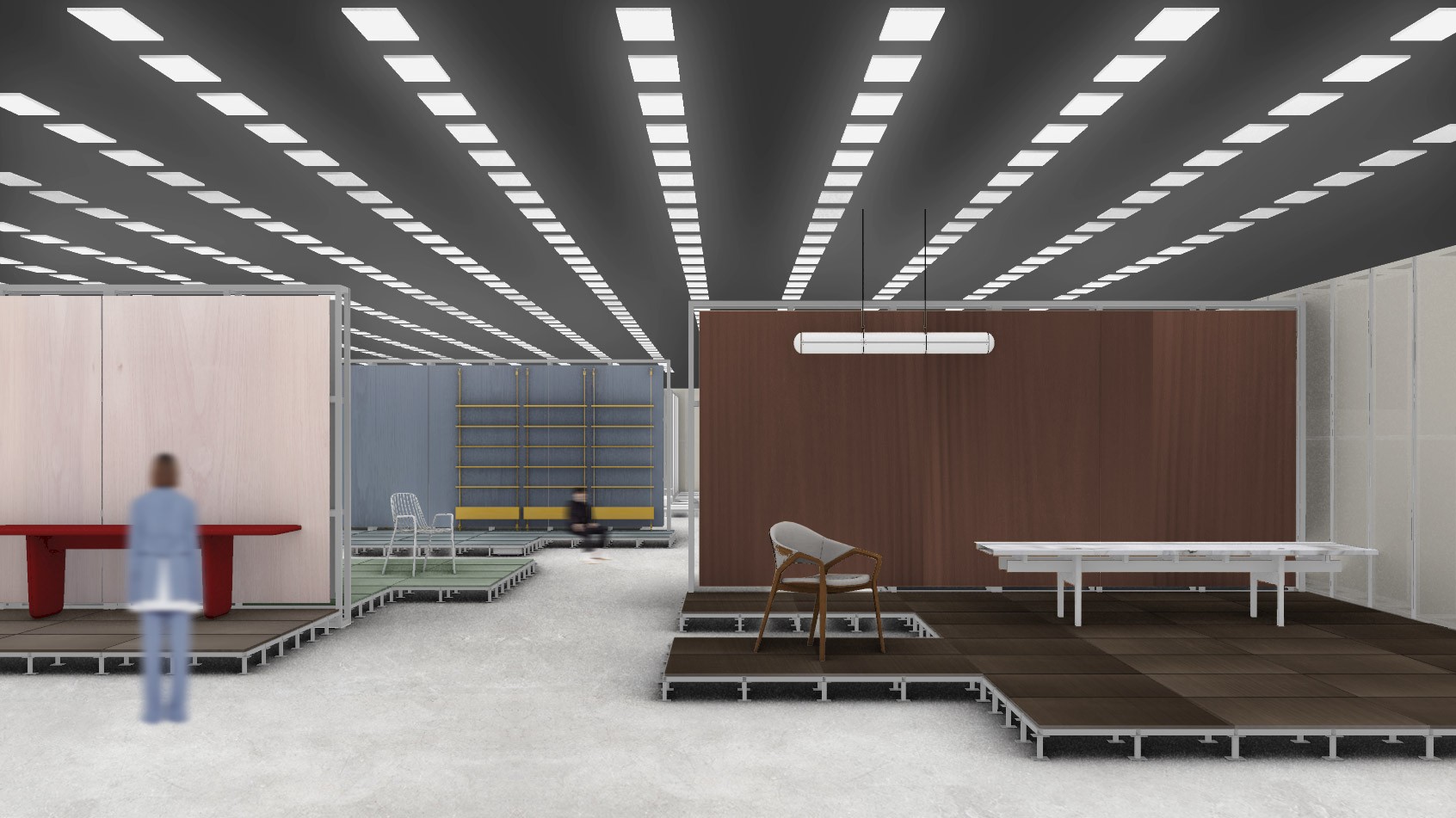 Perspectiva de como será o novo Salão Raritas, nos pavilhões 9 e 11 do Salão do Móvel de Milão 2026, com projeto do Formafantasma