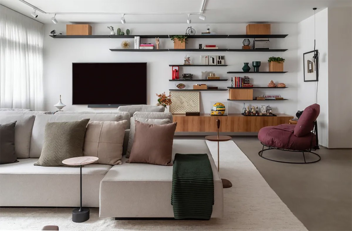 Apesar de parecer uma tarefa impossível, ganhar mais espaço em casa sem precisar se desfazer de objetos queridos depende apenas de adotar as estratégias corretas. Uma das soluções mais eficazes é investir na verticalização. “Utilizando prateleiras, nichos e organizadores de porta é possível liberar áreas de circulação e aproveitar melhor as paredes”, comenta Josi. A técnica é especialmente bem-vinda em ambientes como a sala, para acomodar livros e objetos decorativos, no banheiro e na área de serviço.