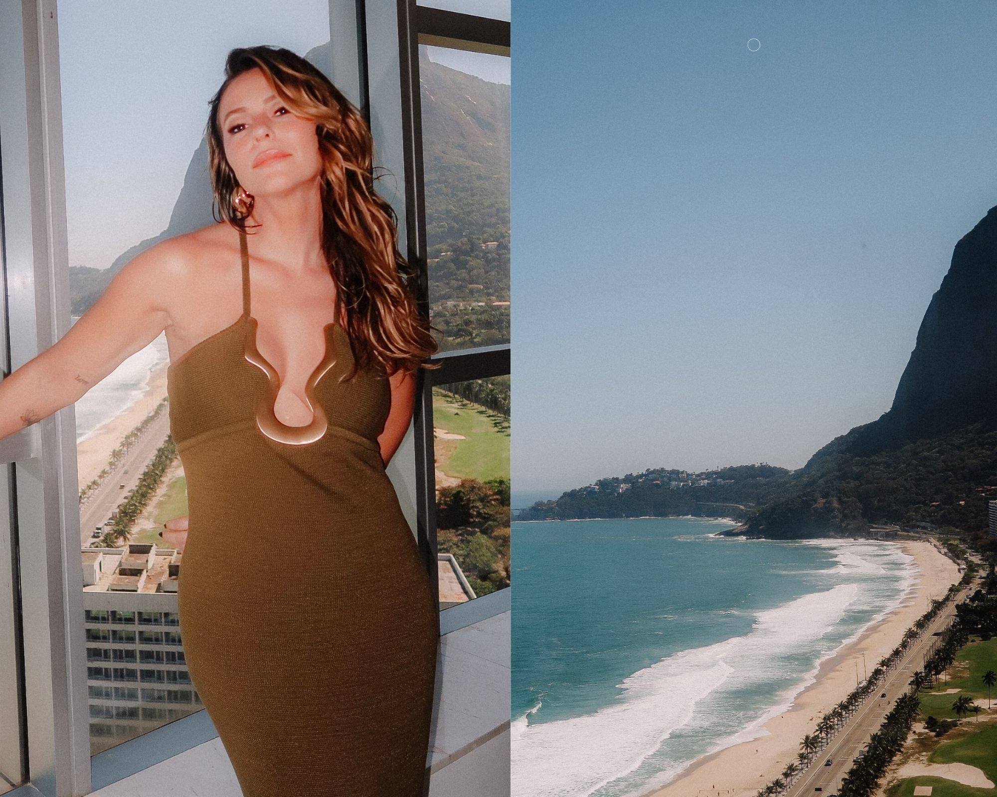 “É trabalho, mas com uma vista dessa não tem como não ficar feliz”, escreveu ela em foto publicada nas rede sociais, enquanto mostrava a praia belíssima da cidade maravilhosa de fundo.