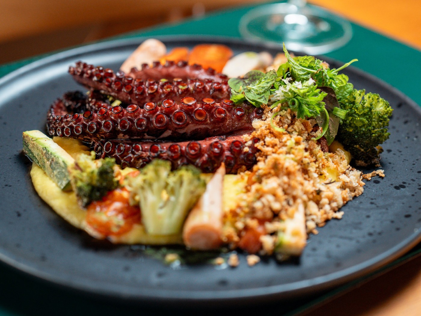 Com sabor marcante e textura delicada, o polvo se destaca em receitas sofisticadas. No restaurante Flor da Lagoa, em Araruama (RJ), o chef Rodrigo Debossan serve o fruto do mar com purê de mandioquinha e batata-doce, legumes grelhados e farofa de ervas para acentuar o frescor e a complexidade do prato. Aprenda a fazer:
