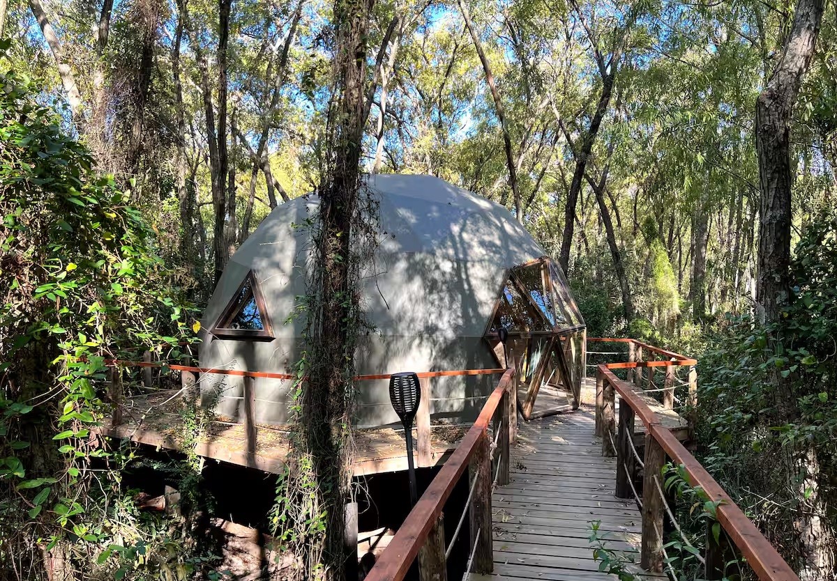 Uma casa na árvore em uma área floresta de San Fernando, na Argentina, tem chamado a atenção pela arquitetura esférica. Chamada de Domo Árbol ou Tree Dome, a casa é considerada um “refúgio boutique ideal para casais que procuram se desconectar e se reconectar”. Localizada em uma área com três hectares de floresta e trilhas para explorar, a casa comporta até cinco pessoas e aceita pets de pequeno e médio portes.