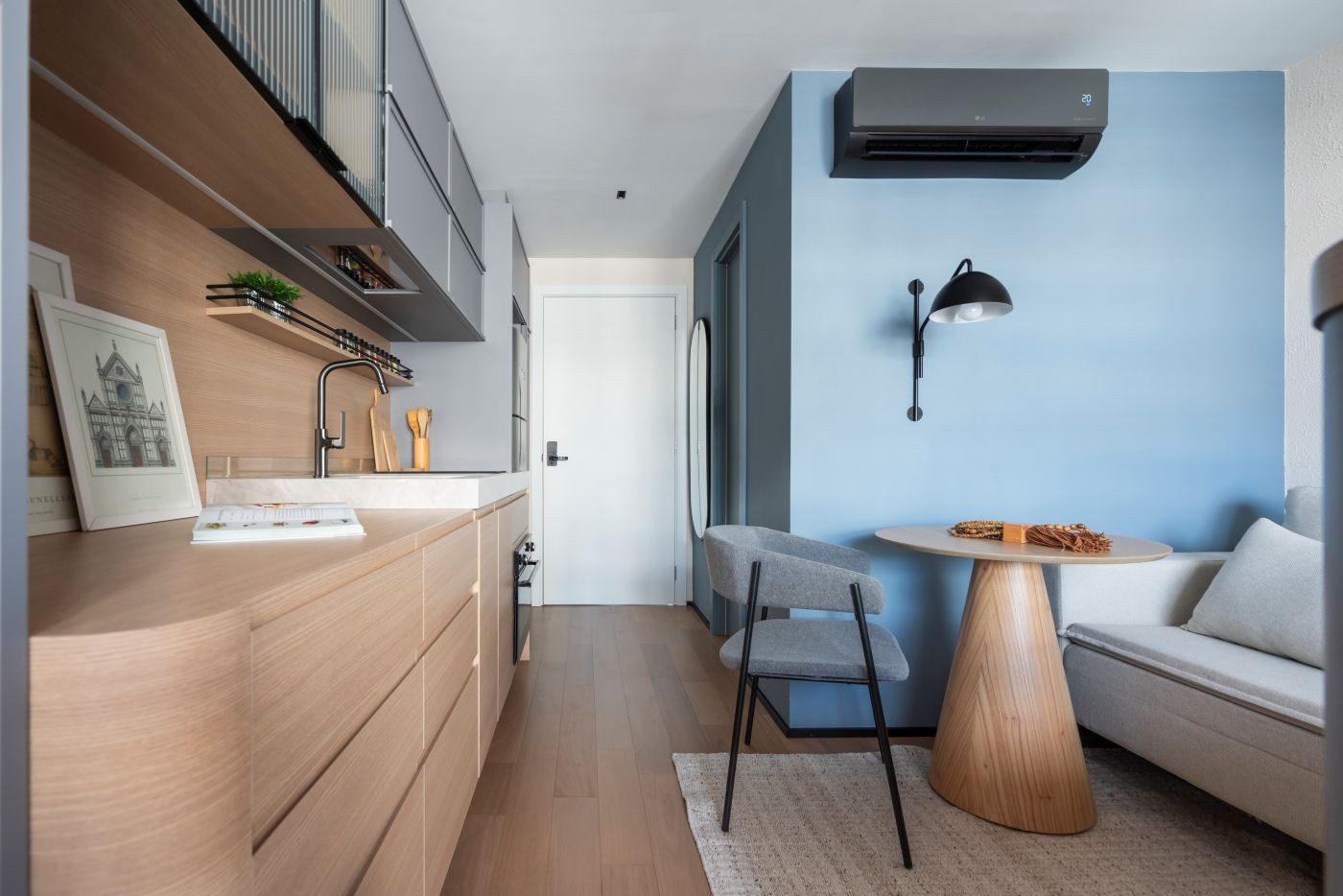 Um estúdio de 24 m² pode parecer limitado à primeira vista. No bairro Auxiliadora, em Porto Alegre, RS, porém, a metragem enxuta se transformou em oportunidade para criar um lar funcional e completo.