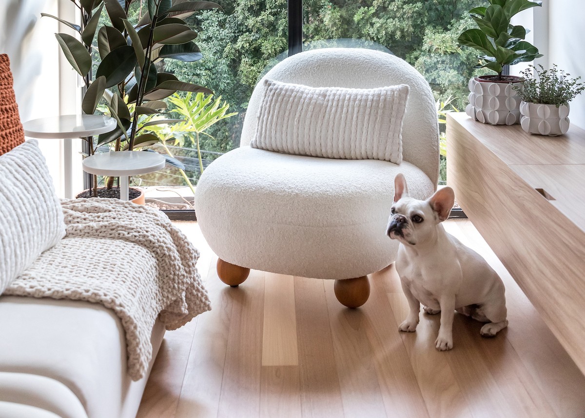Além de dar segurança para o animal, o porcelanato acetinado oferece praticidade na limpeza. “É resistente a riscos e umidade, fácil de limpar pelos e outras sujeiras, como xixis fora do lugar, e não absorve odores. Também oferece bom conforto térmico”, recomenda Danielle Dantas, da Dantas e Passos Arquitetura.