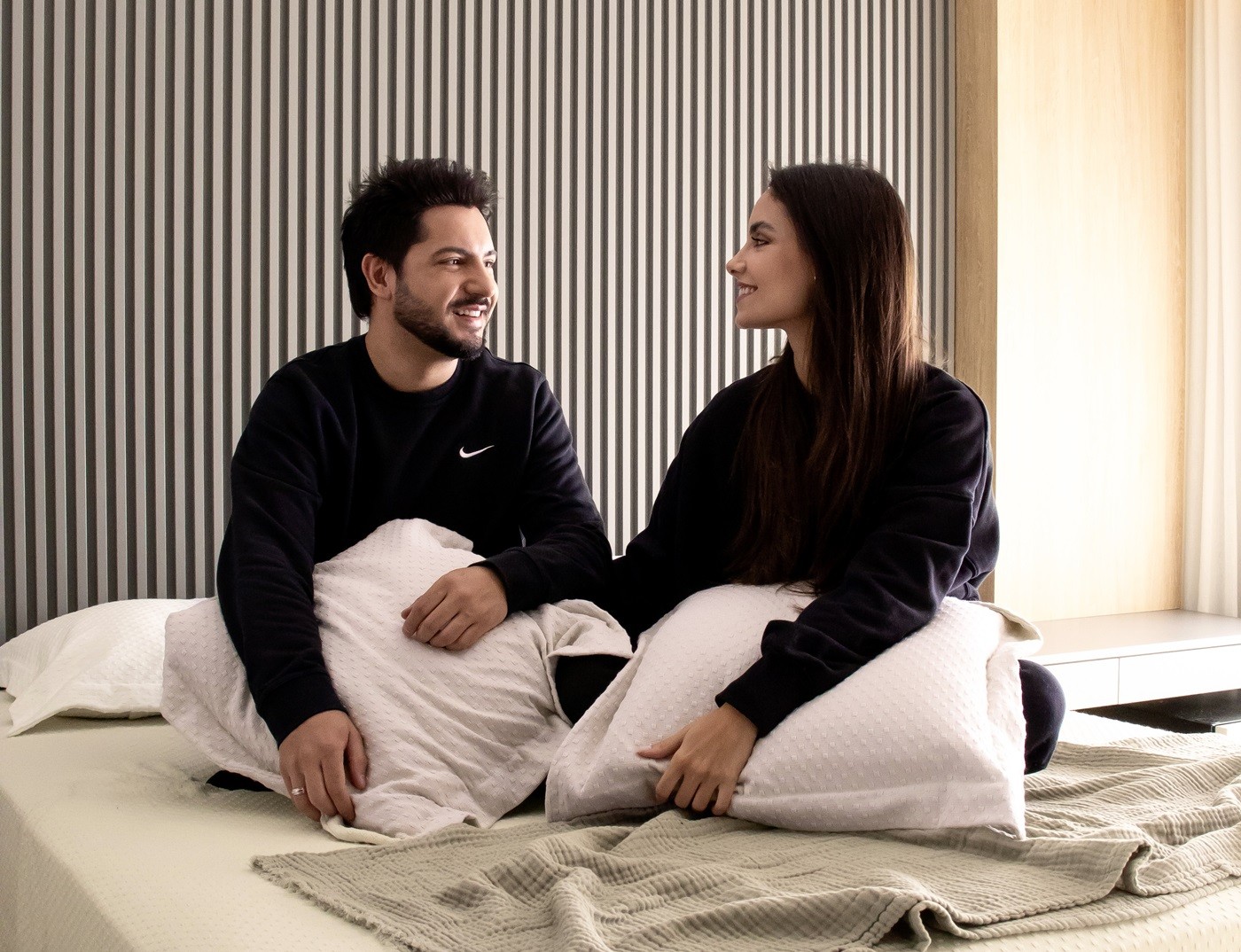 A principal mudança foi em relação à planta da suíte principal. “Resolvemos juntar as duas suítes e transformar em um espaço que fizesse sentido pra nós. O nosso quarto ficou mais espaçoso, com um closet que comporta as nossas roupas e dois banheiros, o que era um sonho”, afirma Georgia. “O banheiro da Geórgia é maior, tem espaço pra dezenas de produtos para o cabelo e tudo que ela gosta. Já no meu banheiro eu queria uma sauna, porque eu adoro e nunca tinha tido dentro de casa. Ficou muito legal”, completa o sertanejo.
